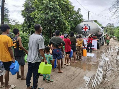 Red Cross teams are delivering clean water to communities affected by severe flooding.